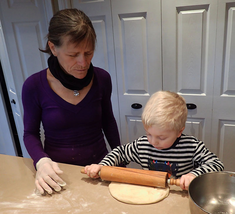 La garderie est fermée aujourd’hui, alors Émerick a offert son aide à grand-maman pour faire les brioches de Noël