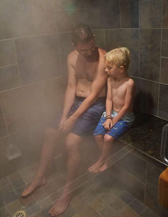 Dans le sauna de tante Stéphanie avec papa