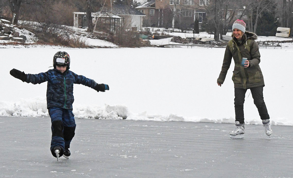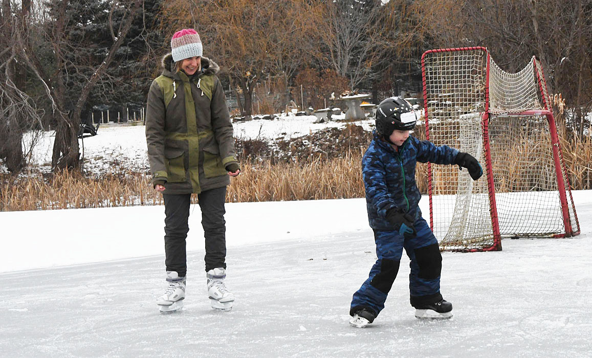 Émerick n’avait jamais patiné et n’avait donc pas de patins. Or, les patins de garçons, ce n’est pas ça qui manque chez tante Stéphanie, qui a eu tôt fait de lui en dénicher une paire à sa taille