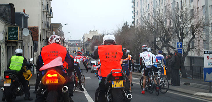 Dès la sortie du village et grâce à un parcours virevoltant à travers la campagne tourangelle on s'aperçoit que les Calyon sont devant et qu'ils ont décidé de marquer de leur empreinte les premiers kilomètres. William nous confirmera le soir que ses coéquipiers ont souvent mené le bal. Dès le kilomètre 3, c'est Mathieu Roy qui lance les débats, il est vite repris par un peloton qui ne l'entend pas de cette oreille. Puis c'est au tour de Maxime Vivès de se glisser dans un petit groupe de huit pendant 3 kilomètres. Les grosses « armadas » ramènent tout le monde. Avant la première bosse que nous avons repérée et décortiquée pour l'équipe la veille, le peloton roule en file indienne et nous n'apercevons aucun Calyon à l'arrière. C'est bon signe.