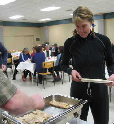 Tout ça dans les vêtements humides de la journée, skis et pôles sous le bras dans un vent de face qui soufflait à écorner les boeufs.