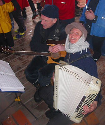 On sait bien recevoir la visite à Val d'Espoir. Les bancs d'église avaient été tassés sur le côté et des musiciens locaux mettaient une belle ambiance déjà bien chauffée par l'excellente soupe aux légumes que deux gentilles paroissiennes nous servaient.