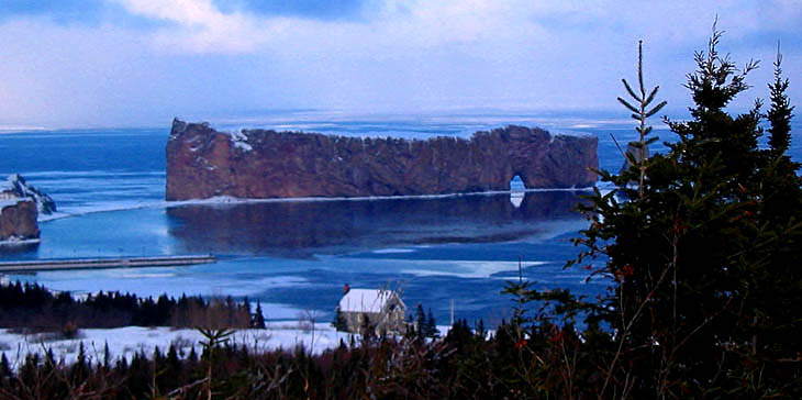 Tous avaient hâte d'en finir pour voir le Rocher Percé pris dans les glaces. On nous promettait un beau spectacle. Aucune déception enregistrée. D'autant moins que les fondeurs de la Traversée ont été reçus au Centre d'interprétation, tout juste à côté du quai, avec vin chaud, saucissons, viandes froides et terrines de canard. Miam! Miam! Miam!