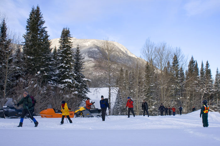 Premier jour, le thermomètre indique presque -15C au lever vers 5h du matin. Le ciel est beau. Pas trop de vent. Le fart de retenue (la grip, comme qu'on dit !) fonctionnait à merveille. Mais on ne roule pas dans un sentier sauvage du parc de la Gaspésie comme sur une autoroute tracée à répétition de nos belles stations de ski de fond. Pour un vétéran comme moi sans technique particulièrement poussée, mais avec un moteur de locomotive, ça se traduit par une vitesse moyenne de 6 km/h. Ou, plus pratiquement, plus de 7 heures dehors avec la grande boucle proposée. Surtout qu'il fallait se taper une longue et très pentue montée vers le plateau menant au mont Jacques-Cartier et à ses 1 270m d'altitude.