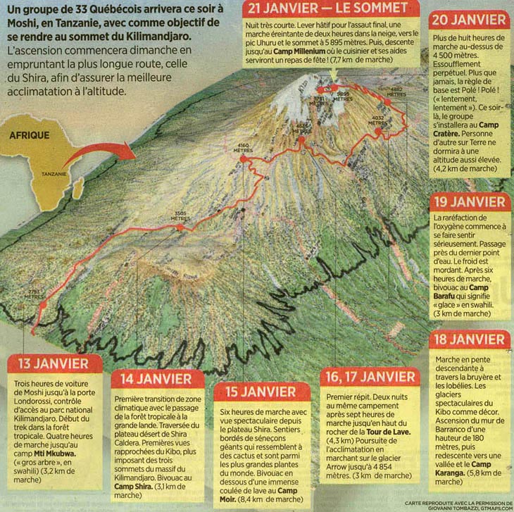 - 27 Québécois atteignent le sommet du Kilimandjaro, 21 janvier