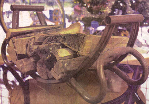 «Nous nous sommes retrouvés avec une quantité incroyable de ces pièces et l'idée de leur donner une nouvelle vocation a commencé à germer dans la tête des plus créatifs ... », explique le directeur Guy Larocque. Ainsi se sont concoctés des présentoirs avec roues inté- grées pour la boutique, des tables basses, ou encore des supports à bûches - l'un avec les deux roues pour retenir les morceaux et un plus petit avec une roue coupée en deux. Leur table de conférence est plutôt impressionnante avec 18 roues protégées d'une vitre, encastrées dans des feuilles de métal déployé. Avec les plateaux des vitesses sont nés des supports à CD, des lampes de chevet. «Un nouveau concept surgit chaque semaine et chacun des employés peut s'en mêler s'il le désire.»