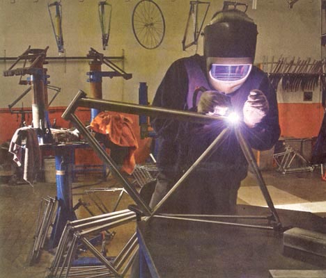 Travail de moine, la soudure des vélos Marinoni en aluminium nécessite un soin méticuleux.