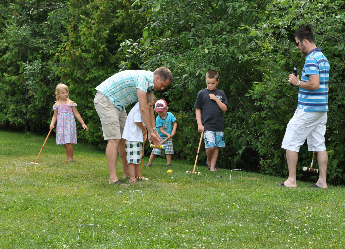 James initie Félix au croquet, William écoute attentivement