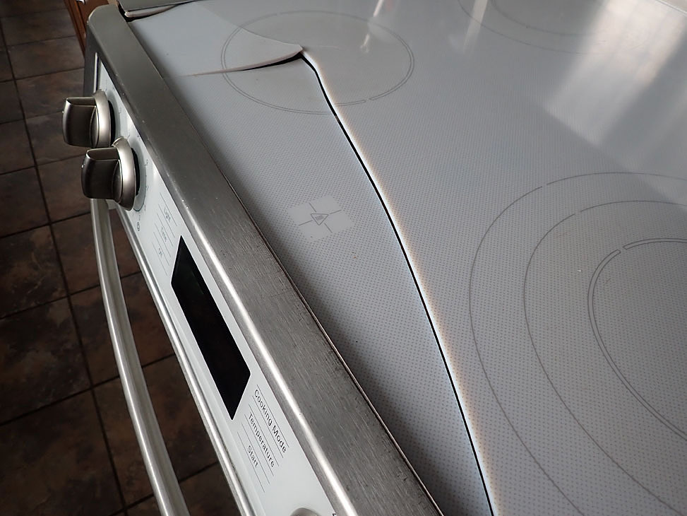 Pour entrer la nouvelle cuisinière, ils ont dü passer par la porte patio de la véranda, enlever la poignée de la porte