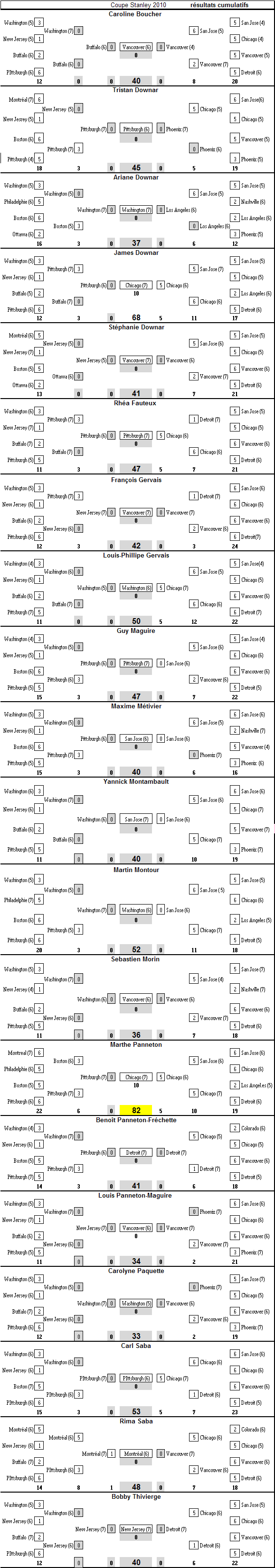 - En finale de la Coupe Stanley, les victoires valent 2 points et 2 points boni pour avoir gagné la Coupe Stanley