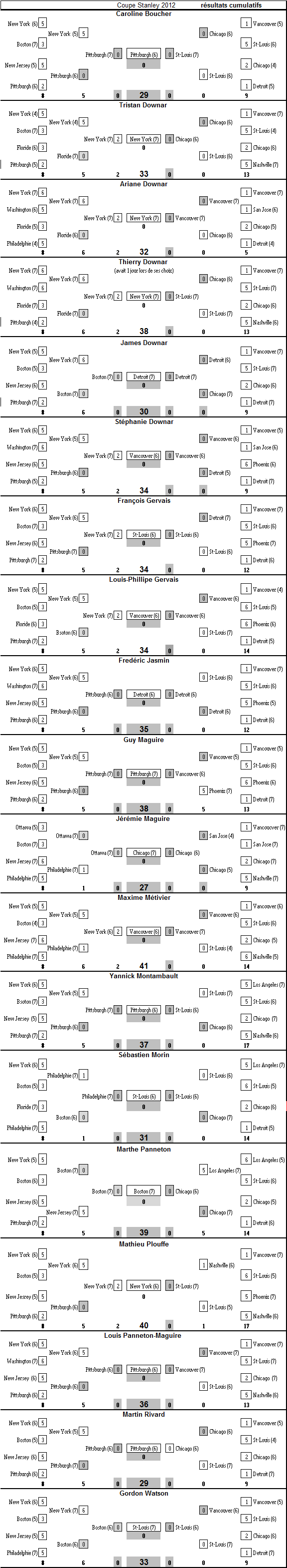 - En finale de la Coupe Stanley, les victoires valent 2 points et 2 points boni pour avoir gagné la Coupe Stanley