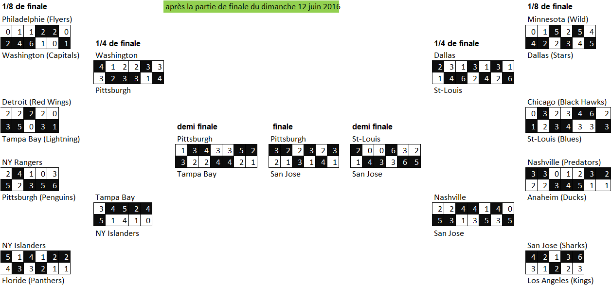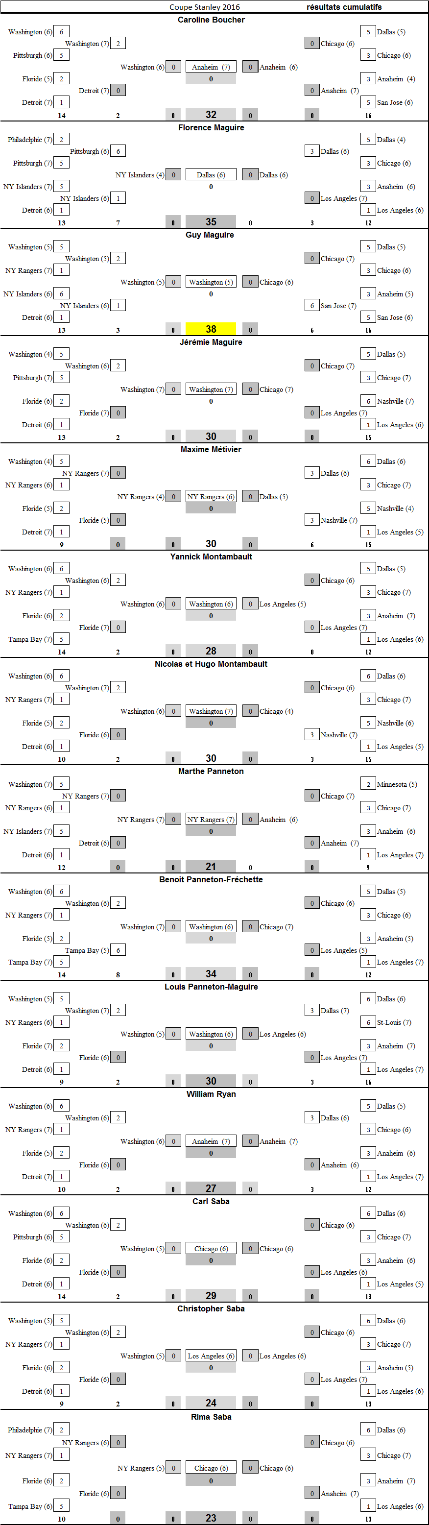 - En finale de la Coupe Stanley, tout est doublé, donc les victoires valent 2 points, 2 points boni pour avoir gagné la Coupe Stanley et 2 points boni si vous avez prédit le bon nombre de parties pour votre équipe gagnante