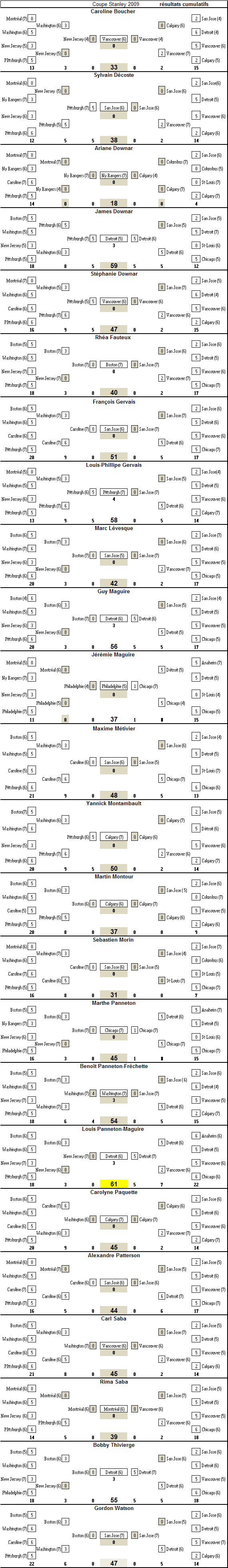- En finale de la Coupe Stanley, les vicctoires valent 2 points et 2 points boni pour avoir gagné la Coupe Stanley