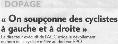 L'ACC aimerait bien que cessent toutes ces rumeurs de dopage qui circulent. Le cyclisme canadien vit présentement un dur moment, soutient le directeur. « Il y a eu Hamilton, où une athlète a été jugée inapte à la compétition. Il y a maintenant cette histoire et elle traîne depuis longtemps. On soupçonne des cyclistes à gauche et à droite. Ça nous fait du tort et ça ternit l'image du sport. »