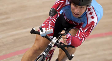 Mark Breton lors du sprint par équipe aux Championnats européens ouverts à Akmaar aux Pays-Bas.