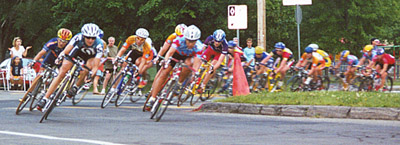Le critérium s'est terminé dans la noirceur. Lyne a fini douzième. Elle a mené à plusieurs reprises mais je pense qu'à la fin elle a un peu "manqué de jus". Il y avait pas mal de monde à Cowansville, c'est encourageant. En retournant, j'ai croisé quelques cyclistes sur la route qui décompressaient, dont Lyne. Alors j'ai eu l'occasion de piquer une 'tite jasette d'environ 10 minutes avec elle. Très sympa. Elle ne semblait pas trop déçue du contre-la-montre car elle trouve le peloton d'un haut calibre cette année et, comme elle m'a dit : «Plusieurs des filles ici s'en vont à Sydney, donc ce n'est pas facile.» Annie Gariépy est venue regarder la course mais sa coéquipière Sarah Ulmer n'a pas terminé le critérum. |