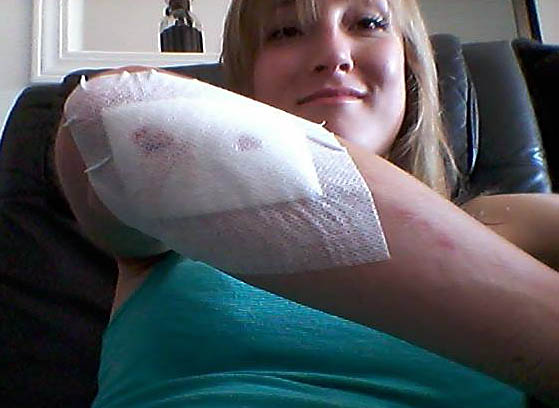 « Fracture du poignet. Espérant que ça sera réglé rapidement ! Merci à ma famille d’accueil ! Ils sont les meilleurs, je ne pourrais pas être dans de meilleures mains ! »