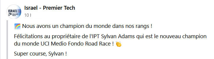 Lisez : Sylvan Adams, le patron de l’équipe Israel - Premier Tech sacré champion du monde, i24news