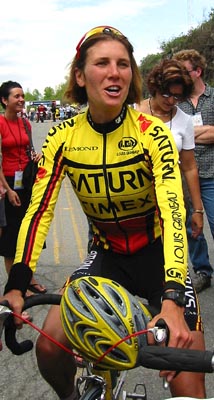 Lyne Bessette, après la course, souriante, parce qu'elle avait tout donné ce qu'elle pouvait.