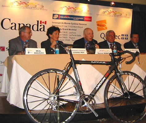Conférence de presse ce 30 avril à Montréal pour annoncer la tenue de la 6e édition de la Coupe du Monde de Montréal, 6e étape du circuit de 9 manches de la Coupe du Monde Féminine sur route UCI ainsi que des érpeuves du Tour du Tour du Grand Montréal.