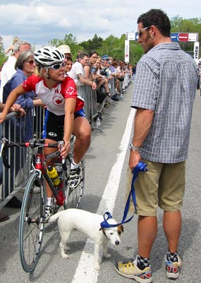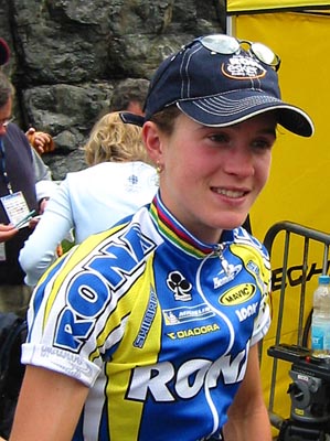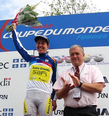 Nicole Cooke a reçu de M. Patrick McQuaid de l'UCI le maillot de meneuse à la Coupe du Monde