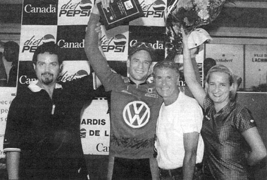 l'athlète de Saint-Bruno a remporté une étape des Mardis cyclistes de Lachine. Après deux tentatives d'échappée infructueuses, le coureur de l'équipe Volkswagen a réussi à larguer le peloton alors qu'il restait un demi tour à faire. Sur la deuxième marche du podium, on retrouve Yannick Cojan (Espoirs de Laval) alors que Charles Dionne (Volkswagen),