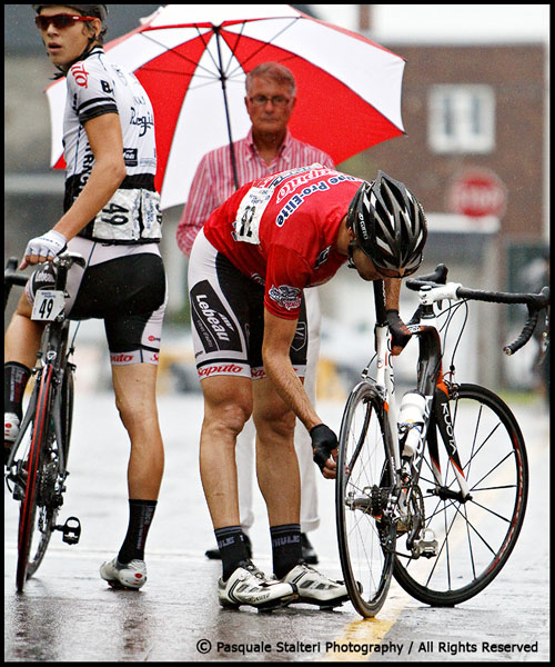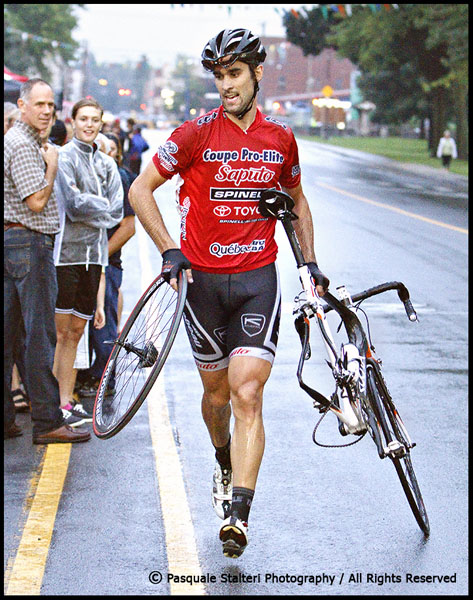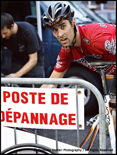 Laroche a été victime non pas de une, de deux, mais bien de trois crevaisons.