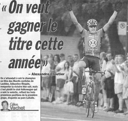« Que voulez-vous que je dise ? Les cyclistes des autres clubs ne savent pas comment travailler en équipe, a expliqué l'entraîneur du club Volkswagen, Josée Robitaille. En d'autres mots, ils ne sont pas capables de s'organiser. Sinon, ce serait beaucoup plus serré dans la course. »