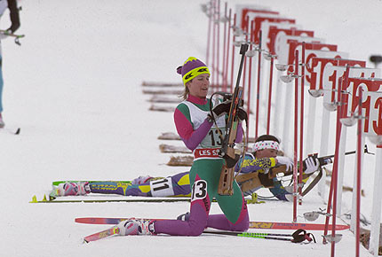 Myriam Bédard lors du relais 3x7,5km aux J.O. d'Albertville le 14 février 1992.
