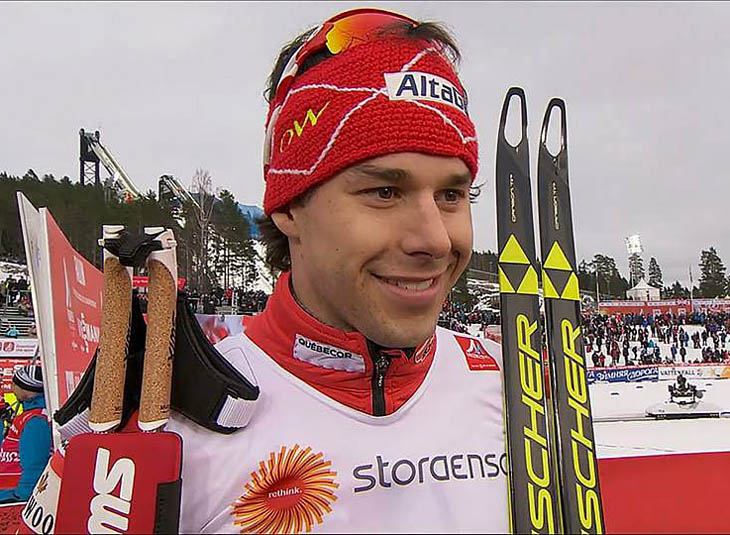 Alex Harvey en compagnie de Lee Churchill, celui qui teste ses skis juste avant la course