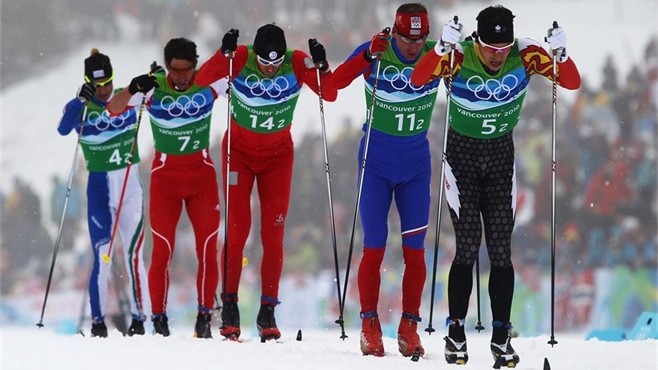 Devon Kershaw est parti premier pour le Canada. Il a terminé 10e, à 28,2 sec du Finlandias, premier. Alex Harvey a fait le 2e segment. Il a terminé 9e à 52 sec du meneur Suédois. Ivan Babikov a fait le 3e segment et a terminé 7e à 50.3 sec du Suédois. George Grey a maintenu la 7e position pour le Canada, terminant à 1m 57.8 du vainqueur.