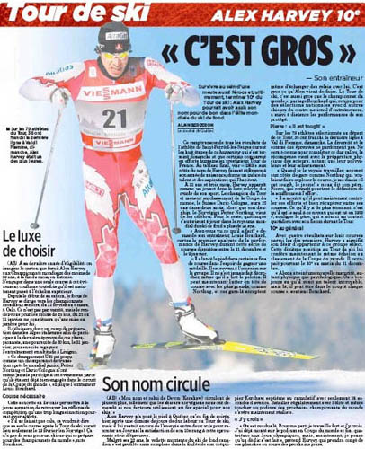 Alex Harvey n’a posé le pied à Québec qu’en fin de soirée, hier, après une dizaine de jours de dur labeur au Tour de ski, mais il lui restait encore de l’énergie entre deux vols pour raconter au Journal la satisfaction de son 10e rang à cette éprouvante série d’épreuves.
