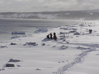 Les «pit-stops» pour enlever des couches et serrer les pelures de trop dans le sac de jour se sont multipliés le long des six kilomètres. L'exercice en valait la peine. La vue de la baie de Gaspé, à moitié gelée, et des falaises de la péninsule de Forillon de l'autre bord de la baie formait un tableau hivernal saisissant.