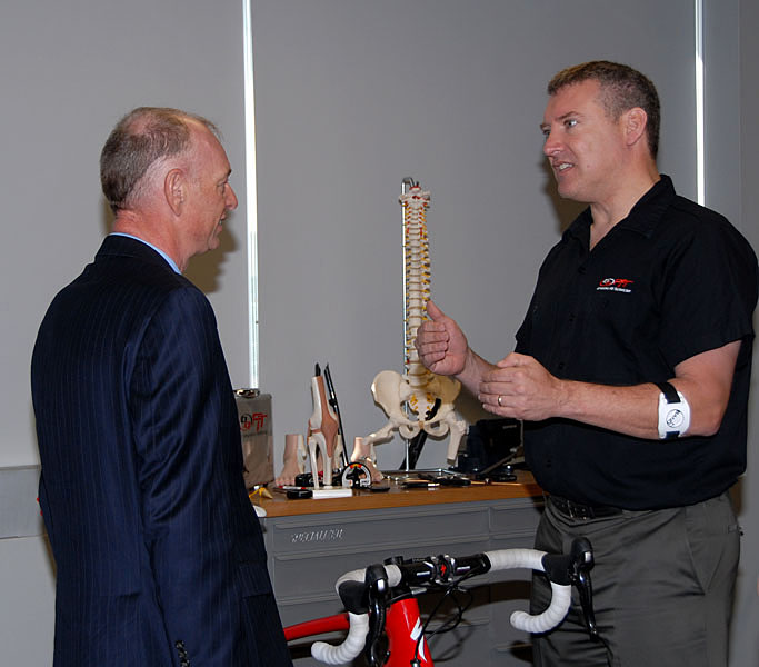 Andrew McGregor, à droite, le spécialiste du positionnement chez Specialised, qui a déjà entre autres travaillé