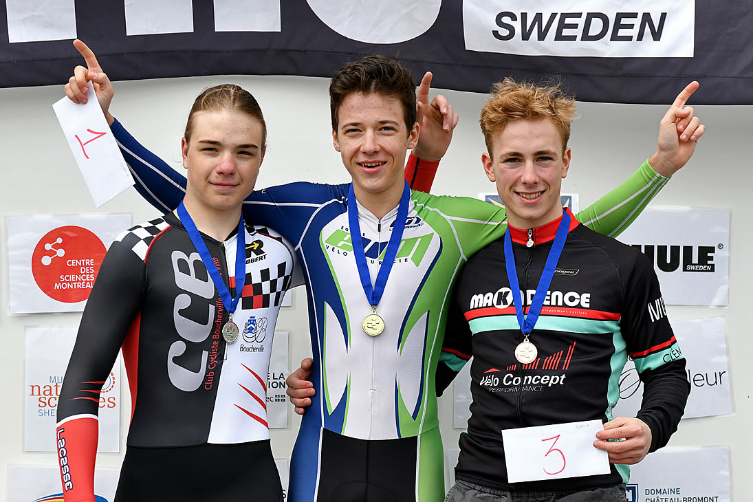 Mathias Guillemette, athlète cycliste de catégorie Cadet de 2e année de l’Équipe Vélo Mauricie-EVM, a remporté le contre-la-montre THULE de Granby en parcourant le trajet de 8 km sous un vent de face en 11 minutes 35 secondes avec une vitesse moyenne de 41,4 km/h.