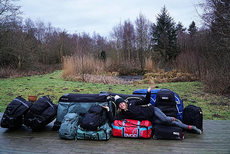**Note 2: I use either the EVOC normal size bag or the EVOC XL bag and that allows me to easily fit 2 cyclocross bikes and 2 sets of wheels inside the bag. To do so, we put the two rear wheels on the outside pockets, the two front wheels go inside the bikes (covered in bubble wrap), and we take off the pedals. Easy peezy, safe, and you save on luggage fees at the airport!