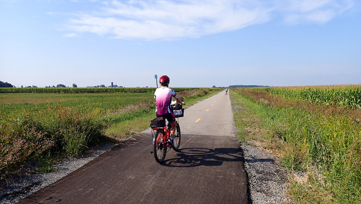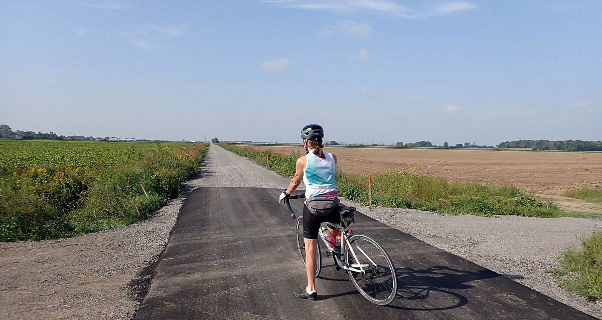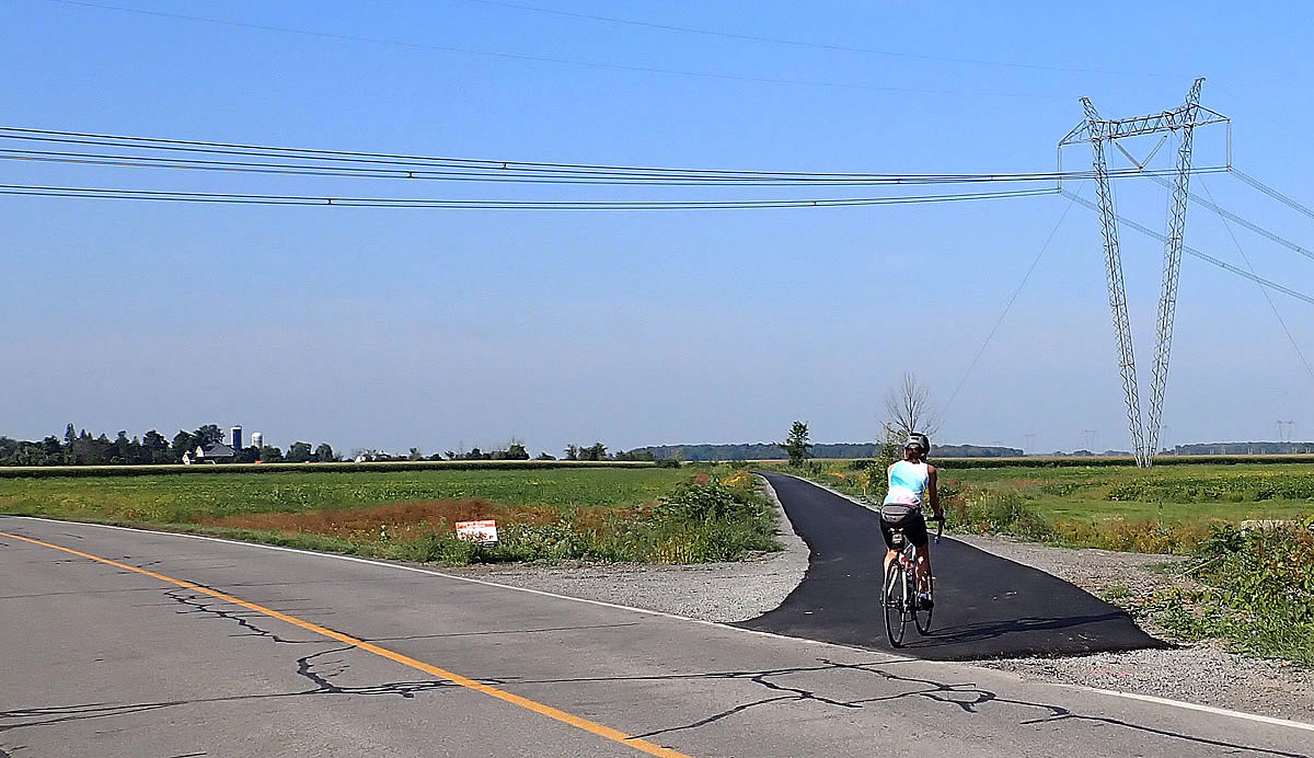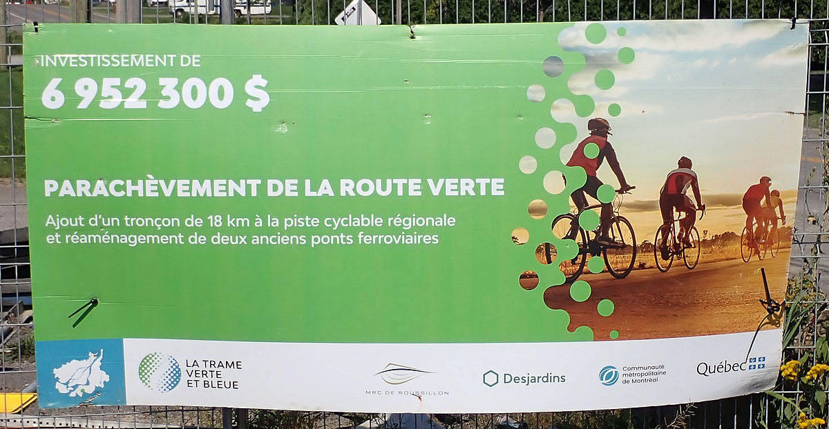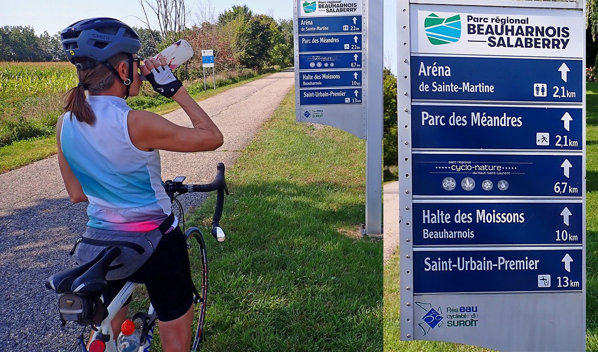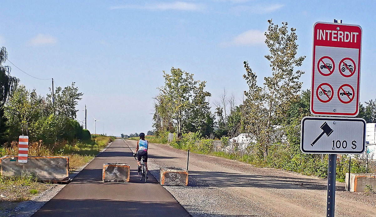 On roule 6.3 km et on arrive à la fin du nouveau recrouvrement asphalté qui rejoint la piste existante du Réseau cycliste du Suroît.