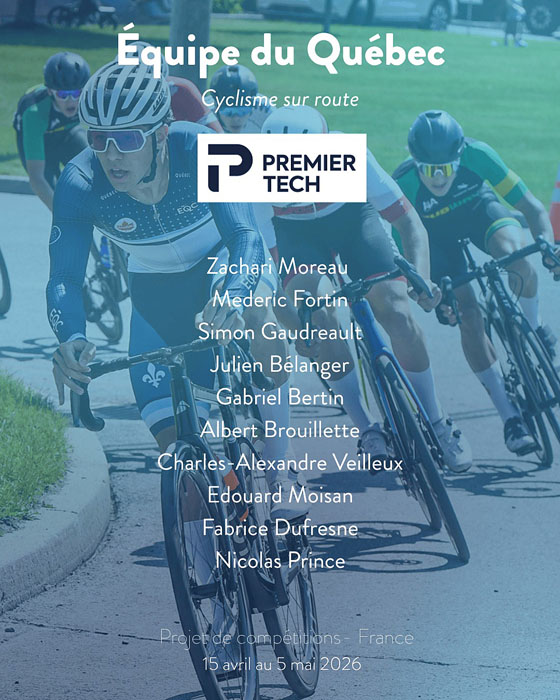 Ce projet est rendu possible grâce au précieux soutien de Premier Tech, un partenaire clé dans le développement du cyclisme québécois et l’accompagnement de ses talents sur la scène internationale.