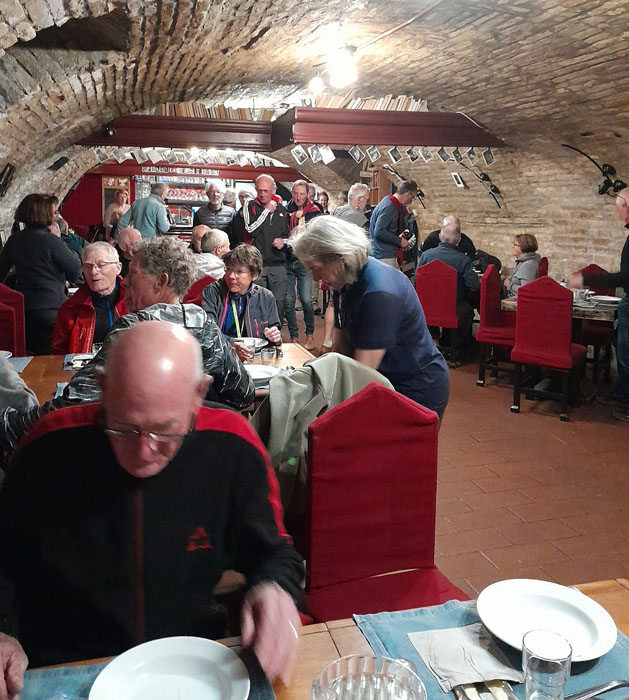 Souper dans un restaurant du genre cave à vin, qui est apparemment un lieu de culte pour les artistes du cinéma hongrois.