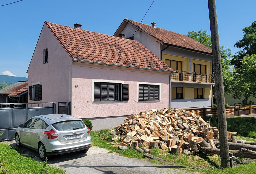 Puis en route vers le lunch, situé aux environs du 90e km, on voit des amas de bois devant plusieurs maisons. La raison en est bien simple. Il en coûte de 100 à 300 euros par mois pour se chauffer en 2023 et certains se font livrer du bois tout vert, qu'ils font alors sécher devant leur résidence durant l'été et puis l'automne on le débite bien sec pour les mois d'hiver.