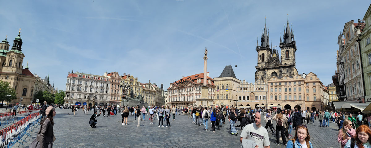 Une énorme quantité de personnel nous reçoit à Prague, la pénurie de personnel ils ne connaissant pas. Et ils sont super gentils, en plus. Il y'a un trafic immense ici, on nous informe qu'il y'a un match important, pas du hockey mais du foot. Ici ils prennent tous les moyens pour contrôler les hooligans.