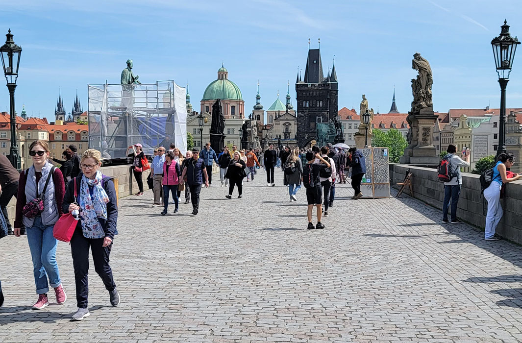Sur le pont Charles, une grande attraction touristique, à voir.