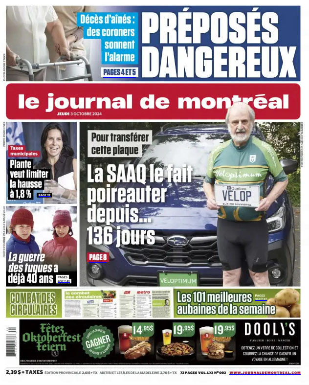 3 octobre 2024, 15h15, appel d’une gentille dame de la SAAQ