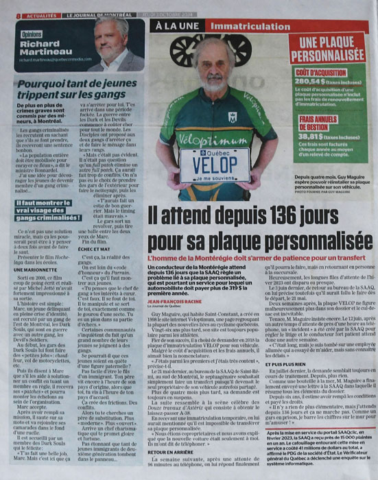 Une attente de 136 jours pour sa plaque personnalisée à la SAAQ, par Jean-François Racine