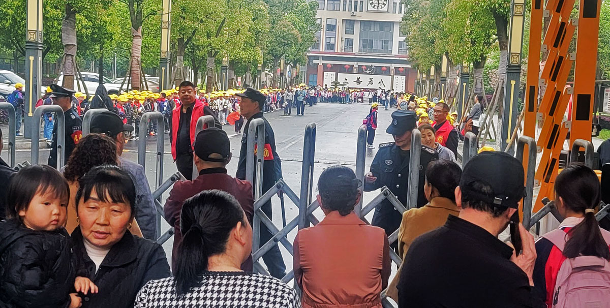À notre arrivée à destination, trafic immense à la sortie d'un édifice public. C'est vendredi, hourra l'école est finie ! Les enfants sortent de l'école, tous les parents les attendent.