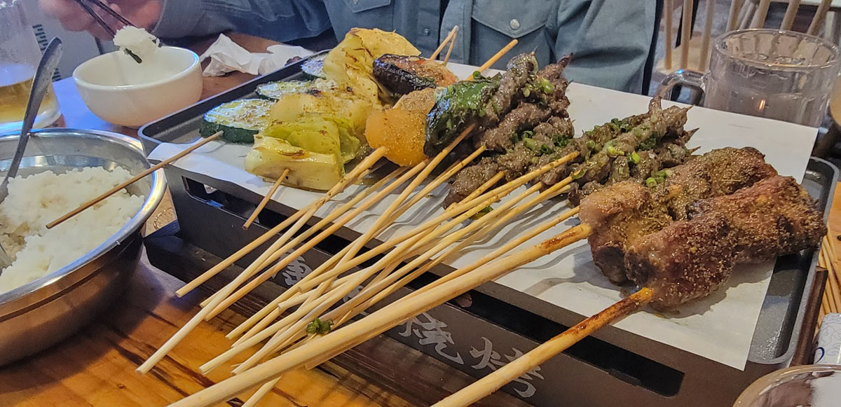 Réussite que ce plat de brochettes (de tout : concombre, patates, boeuf, porc...) ça on connaît.