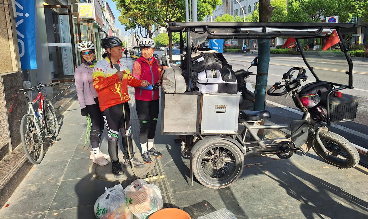 Ce matin nous découvrons un groupe de cyclistes qui ont logé dans notre hôtel. Voici la version solaire de leur vélo porte-bagages.