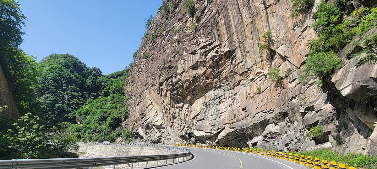 Magnifique route bordée de falaises.