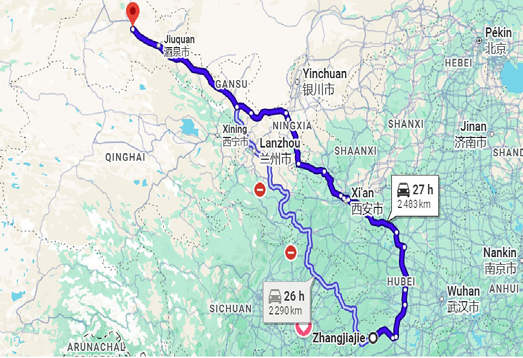 En partant de Zhanjiajie, nous allons pédaler pendant 35 jours jusqu'à Yumen, dans le nord-ouest de la Chine, suivi de 9 jours en train.